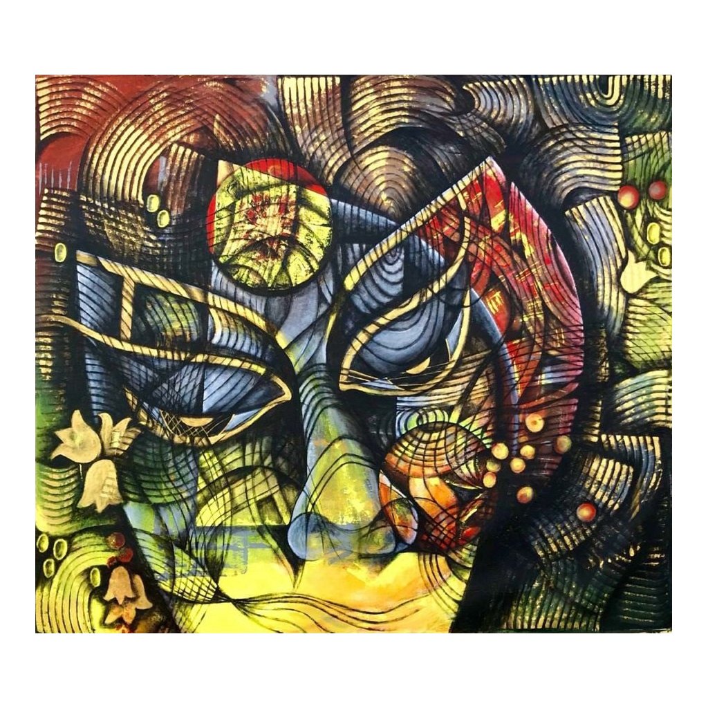 The object of my paintings is not to focus on one central character or idea. The whole point is to take the whole painting as a complete ONE. The lines connect the one to the one. They flow endlessly. Sometimes in never ending circles, sometimes aimlessly moving around n out to show interdependency. They intertwine and flow in harmony n chaos …. As and how you take it.